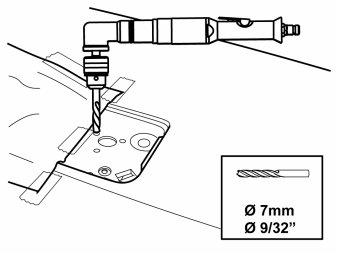 - Drill the holes for the holder's stud screws using a -7 mm (9/32") drill bit.