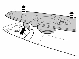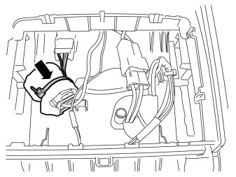 - Lift up the loudspeaker. Disconnect the connector.