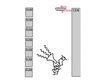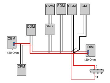 The interface between the high and middle-speed sides is supplied by the central electronic module (CEM) which converts the transmission speed up or down for communication between the two network sides.