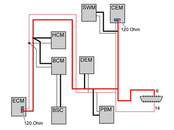 - For MS CAN (Middle Speed) the terminating resistor is in the Central electronic module (CEM) and the Driver information module (DIM).