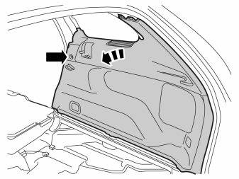 - Detach the C-pillar panel at the lower edge by prying out the lower edge until the two clips release. Angle out the lower edge of the panel and then unhook the upper edge.