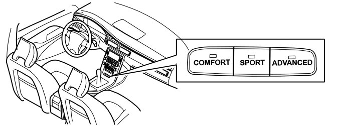 Voltage on the signal conductor from the switch should be approx. 1.63 V at Comfort position, approx. 2.65 V at Sport position and approx. 3.45 V at Advanced position.