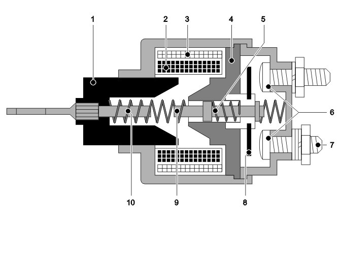 10. Return spring. Resets the solenoid components to the rest position when the starter motor relay is disconnected.