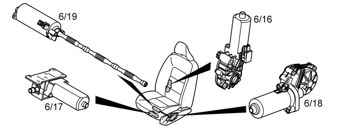 Each seat motor has a Hall sensor which detects the present position of the seat. When one of the stepper motors for the seat is run, the control module counts the number of pulses from the Hall sensor. The Hall sensor counts the number of revolutions made by the motor by detecting a magnet on the motor shaft. This creates a pulse for each revolution of the motor.