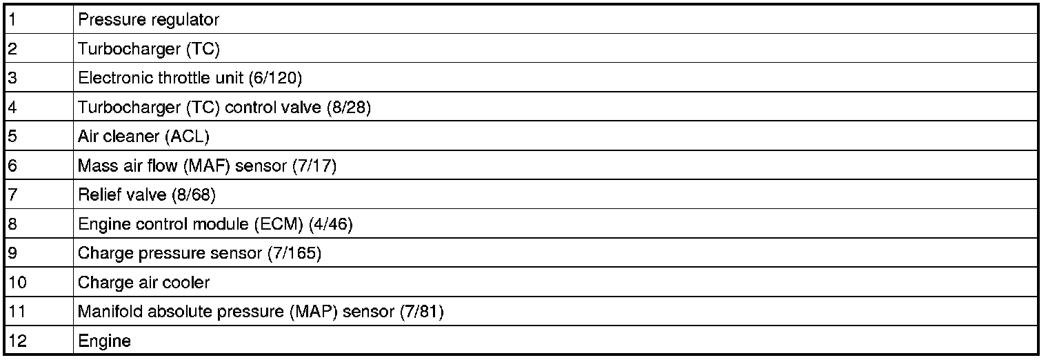The Engine Control Module (ECM) (8) receives information about the current throttle position via the throttle position sensor for the throttle unit (3), engine load, knocking, etc. This affects the boost pressure that is permitted. The boost pressure is measured by the boost pressure sensor (9).