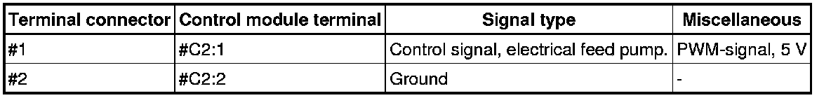 Measure the resistance between feed pump's terminal pin #1 and #2. The value should be approximately 3 - 5 ohms at +20 °C.