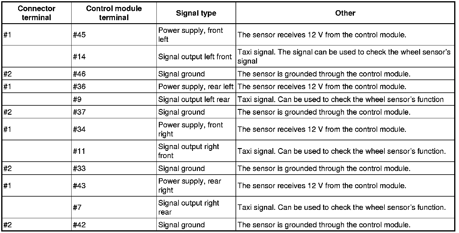 Note! On special vehicles like police and taxi, all extra connected devices must be shut off as they may use any of the signal outputs in the table above.