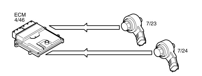 The engine control module (ECM) calculates the optimum ignition advance based on the software and information from the sensors. The engine control module (ECM) cuts the current to the ignition coil mounted on the cylinder to be ignited and produces a spark.