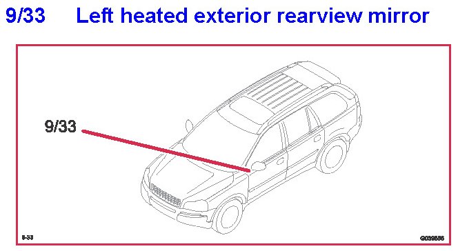 9/33 Left Heated Exterior Rearview Mirror
