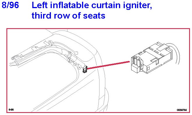 8/96 Left Inflatable Curtain Igniter, Third Row Of Seats