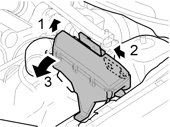 - Remove the screws for the rely / fuse holder. Push the lock at the front of the fusebox to one side. Lift the relay / fuse holder