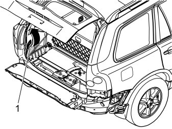 Fold up the cargo compartment floor and remove the corner piece (1) of the floor on the left-hand side. See the illustration.