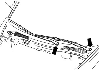 - Detach the panel over the wiper motor on the right side and pull it up from the right wiper shaft.