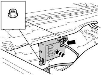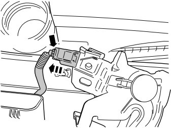 - Unplug the pre-routed connector from the parking module in the bonnet catch by pressing in the catch and pulling.