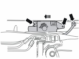 - Slide the alarm siren as far as possible in the bracket's groove. On right-hand drive cars it should be slid to the right, and on left-hand drive cars to the left.
