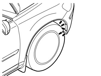 - Remove the five screws securing the bumper casing and air baffle at the wheel housing's leading edge, on right and left sides.