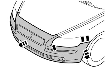 - Detach the ends of the bumper casing on the left and right sides, by grabbing the end of the bumper casing inside the wing liner. Pull carefully so that the two catches on the inside release.