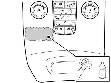 Note! In cases where the area is heavily soiled or treated with cockpit shine, first clean using a washing up detergent.