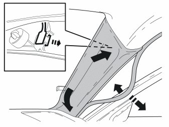 - Pull off the panel from the A-pillar. The panel is secured by three clips.