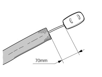 - Tape one long and one short piece of foam tape on the microphone cable starting 70 mm from the microphone.