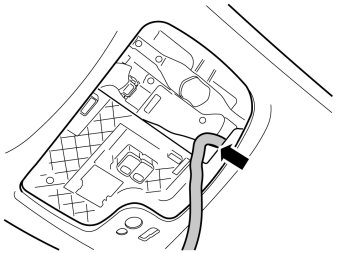 - Press the cable securely into the compartment that is in the joint between the front and rear side of the center console. Stop level with the lower edge of the display opening.