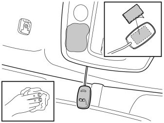 - Clean the microphone and ceiling panel as illustrated, using isopropanol.