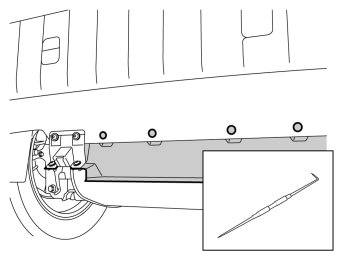 - Carefully pull the panel from the body side and unhook it from the sill panel at the front edge. It is secured by eleven clips on the inside.