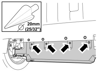 - Mark for drilling the radiated heat shield through the four holes in the lower section of the body and in the radiated heat shield. Mark the middle of the holes by pressing through the panel using a scriber.