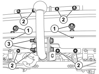 - Tighten the two M14 screws (3) through the spacer pipes and torque tighten to 200 Nm (147 lbf.ft.).