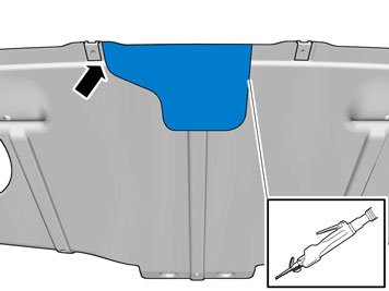 - Clean any dirt, remaining bodywork sealant or splashes of underbody sealant from the marked surfaces for the tow hitch mounting to the body panel on the inside and outside.