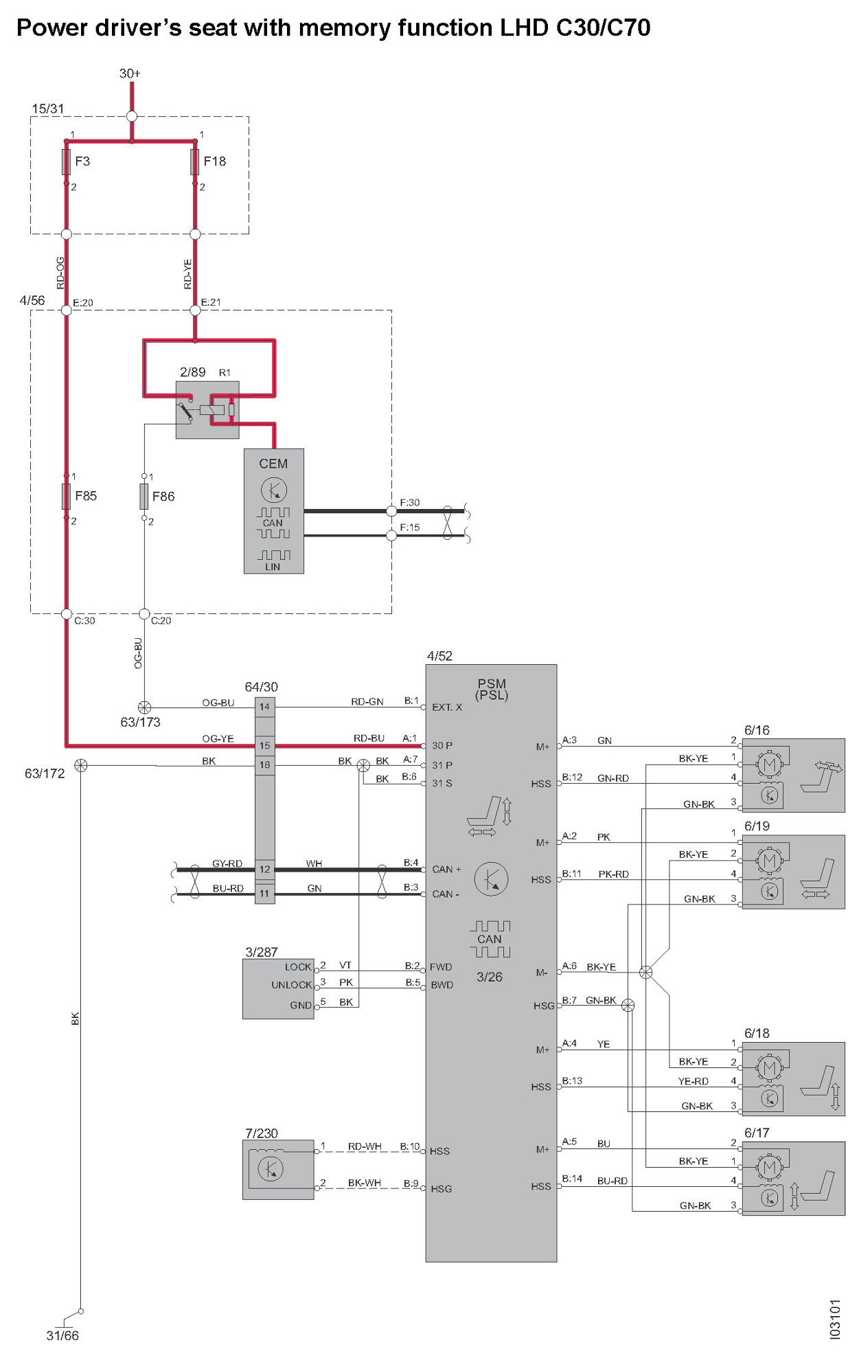 Power Driver's Seat With Memory Function LHD C30/C70