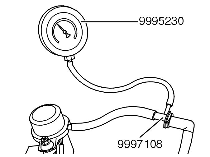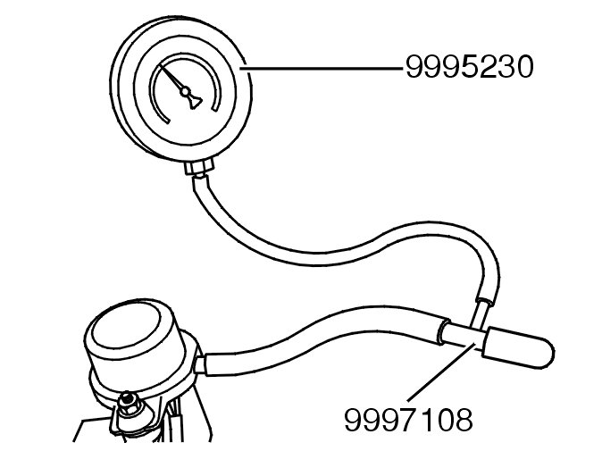 Install the connector for the pump. Read off the value on: 999 5230 PRESSURE METER 999 5230 Pressure Meter.