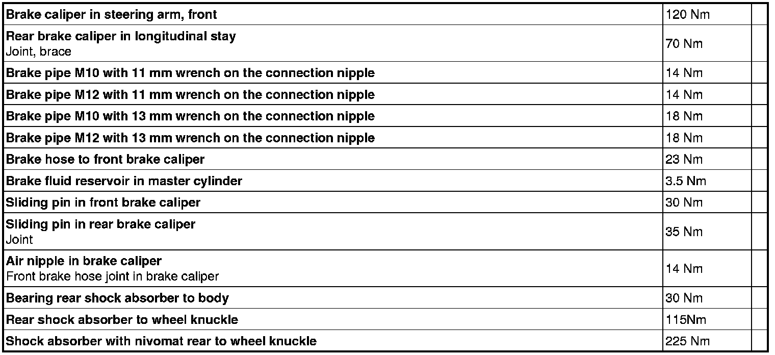 See the table below to find the tightening torques for components not included in the summary.