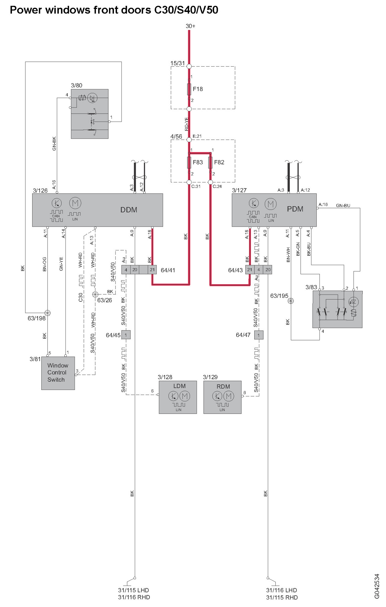Power Windows Front Doors C30/S40/V50