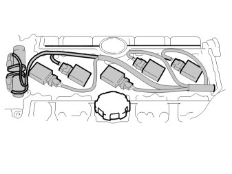 The ignition coils' direction and the routing of the cables are shown in the sketch.