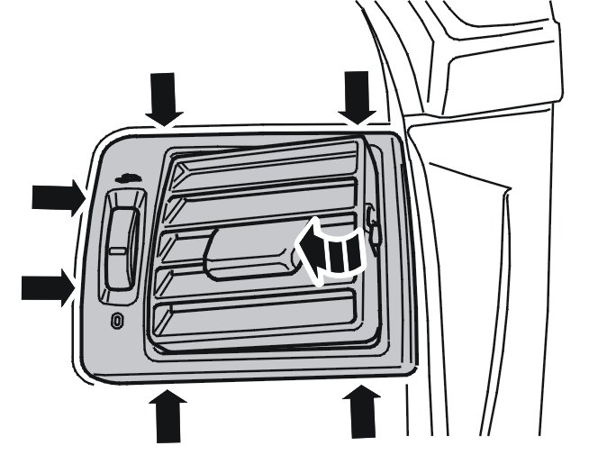First locate the ventilation grilles in the inner mountings. Then press the grilles into place.