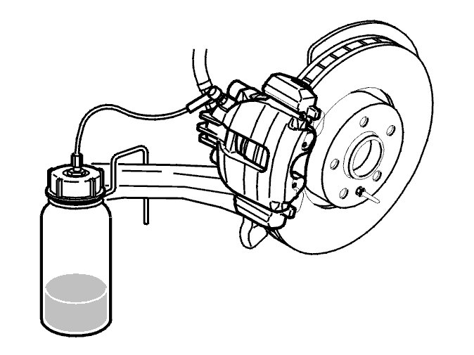 The brake pedal must be depressed throughout the operation. This is so that the brake system is not drained of brake fluid.