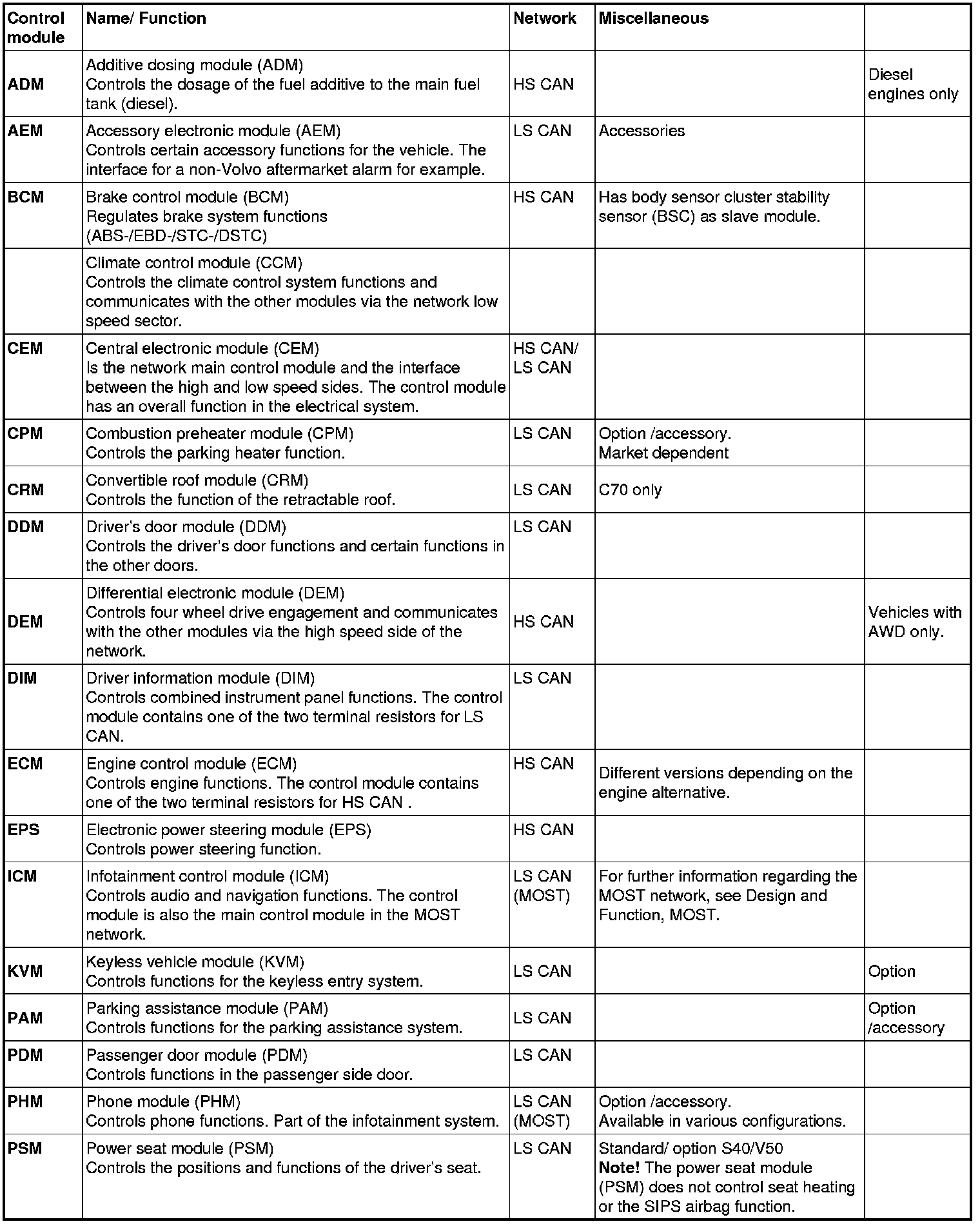 The number of control modules in the CAN varies depending on the level of equipment, the vehicle model and the structure week.