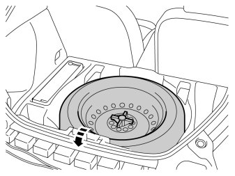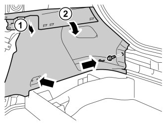 - Fold the panel inwards. Release it from the anchorage eyelets and lift it out of the spare wheel well.