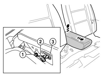 - Then pull forwards until the holders (2) on the sides of the backrest have slid out of the corresponding cut-out (3) in the central arm rest.