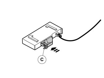 - Plug the 4-pin black connector from adapter wiring (B) into the control module.