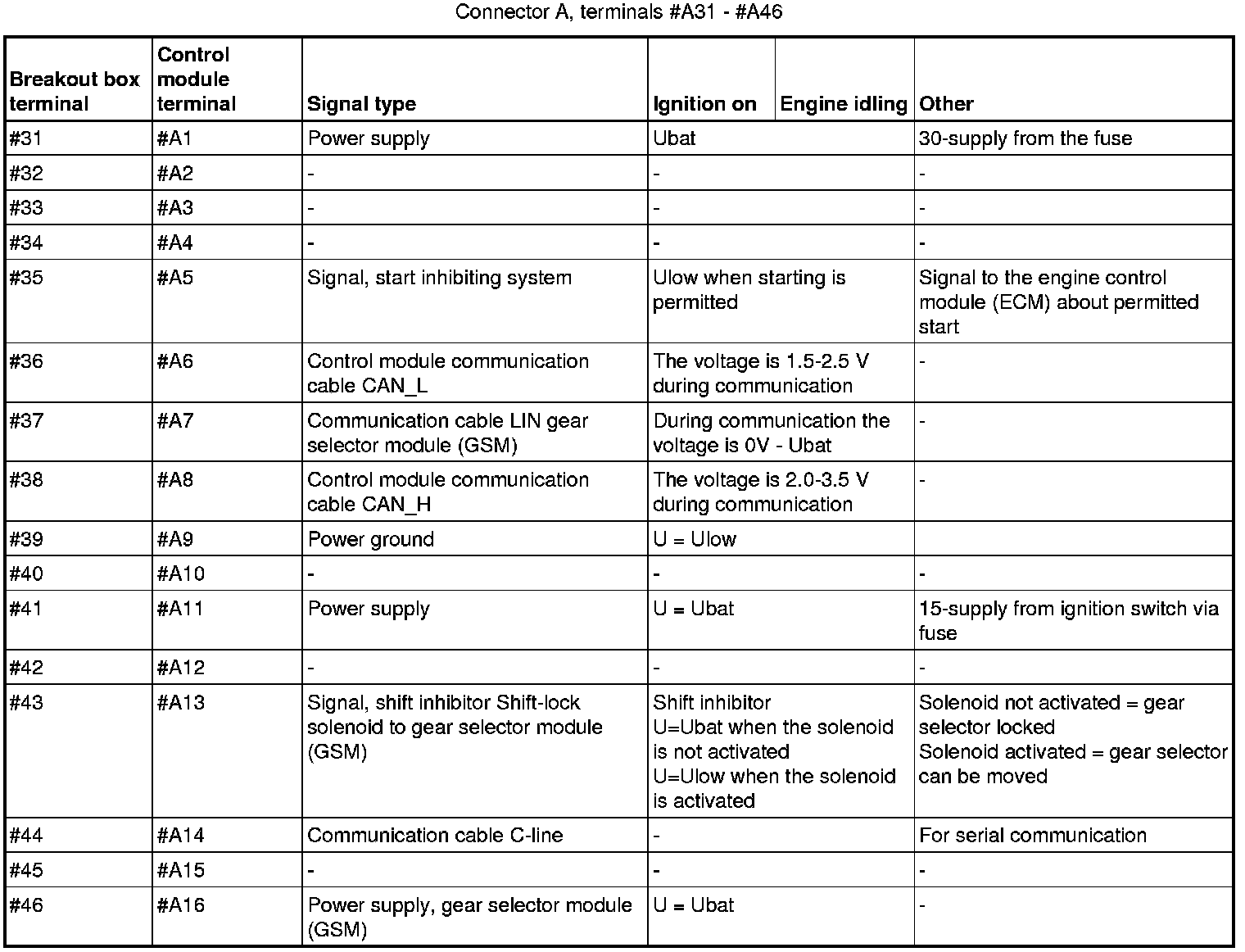 - Connector A (16-pin) corresponds to terminals #31 - #46 on the breakout box
