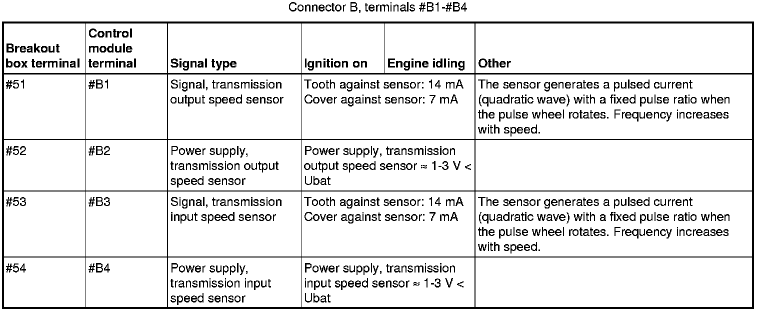 - Connector B (4-pin) corresponds to terminals #51 - #54 on the breakout box