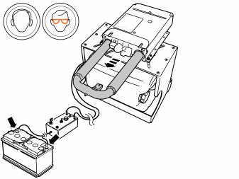 Connect the adapter cable to the roll bar (ROPS) gas generator. Check that it is properly connected.
