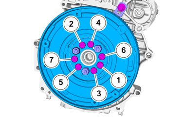 Caution! Make sure that the flywheel is in full contact with the crankshaft flange before installing the flywheel bolts