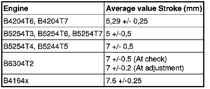 For example: Read off stroke at pressure increase (Depressurized to check pressure) 5.7 mm. Read off stroke at pressure reduction (Maximum pressure to check pressure) : 8.3 mm. Average value = (5.7+ 8.3) / 2 = 7 mm