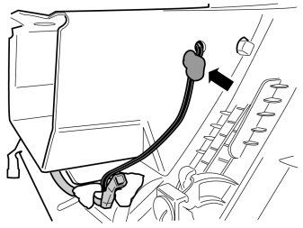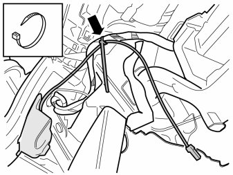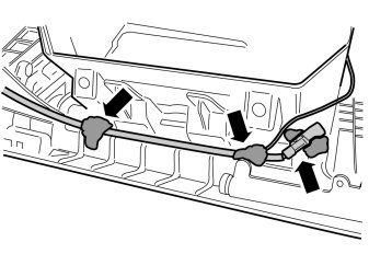 - Clamp the wire to the connector's cable harness so that the wire reaches down to the holder and so that it fits in the slot in the panel.