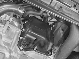 Clean the gasket residue from the cover and the transmission.