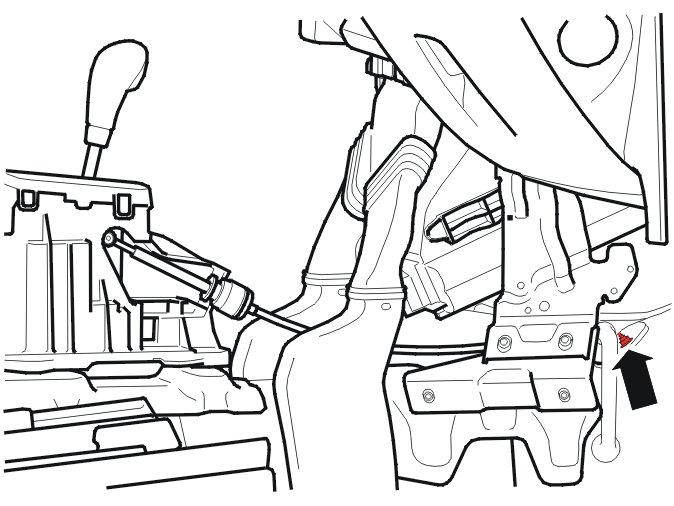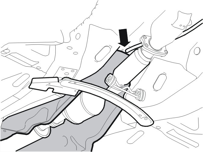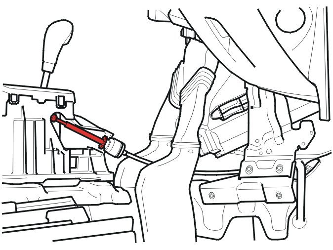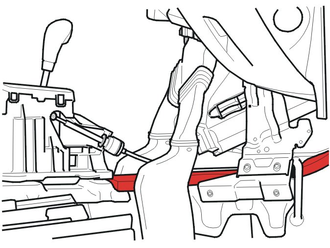 Move the heat shield backwards. This will make the entrance for the gear selector cable into the passenger compartment visible.