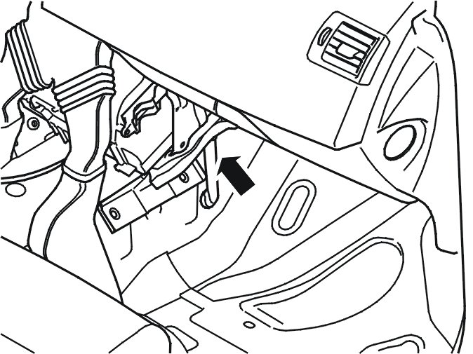 - the gear selector cable on the clip in the transmission tunnel.